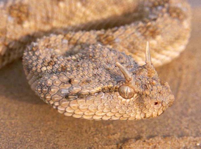 تالفسا نيشاون – أفعى سامة بها قرنان في مقدمة الرأس كما في الصورة